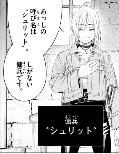 通称「戦士ゴリラ」に関連する人物(あるいは本人)である可能性が濃厚な彼 。ザインが探している親友がついに……!と思いきや、敵側の組織にいるなんて展開に。表向きは妹分のシュリットの生活を世話してあげている様子。なぜ現状に至ったのか気になります。