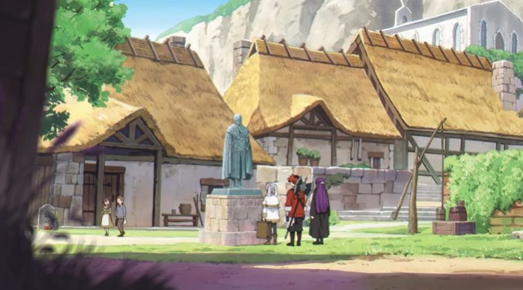 勇者の像を掃除しようとしますが、シュタルクが銅像を見て仰天。いつものヒンメルの像ではありませんでした。