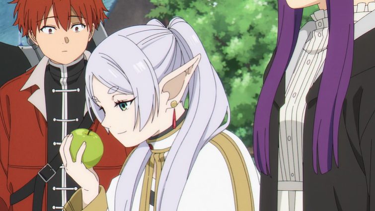 「赤リンゴを青リンゴに変える魔法だよ」と答えるフリーレンの、「だよ」の口の動きが溜まりませんw