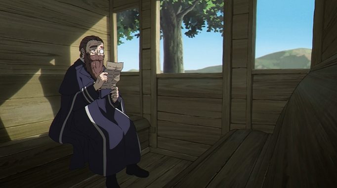 草原を走る馬車の中、デンケンは懐から一通の手紙を取り出し、慈しむように、あるいは決意を固めるようにじっと見つめます。