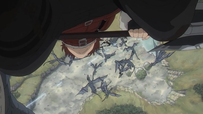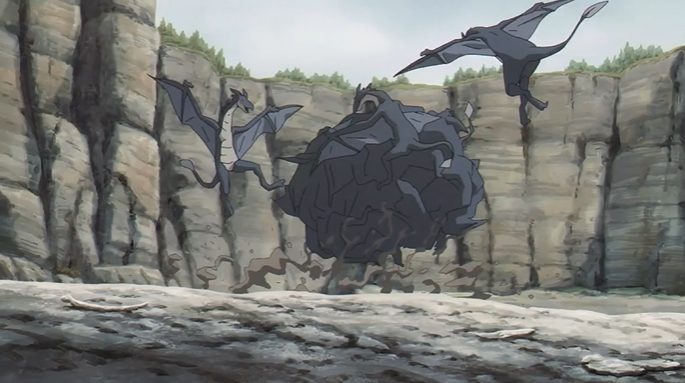 アニメでは、空撮を用いた壮大なカメラワークにより、竜の襲撃によって無残に破壊された村の全景が映し出されました 。